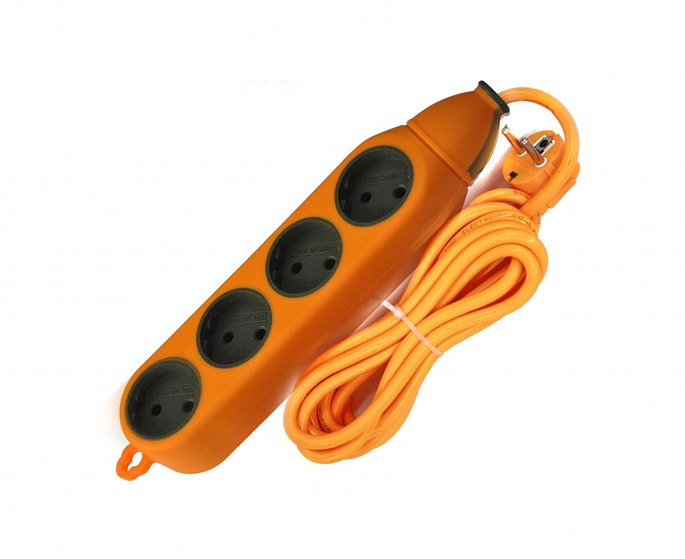 Подовжувач 4 гнізда, двостороння колодка без з/к, помаранчева, ударостійка, 2 метри