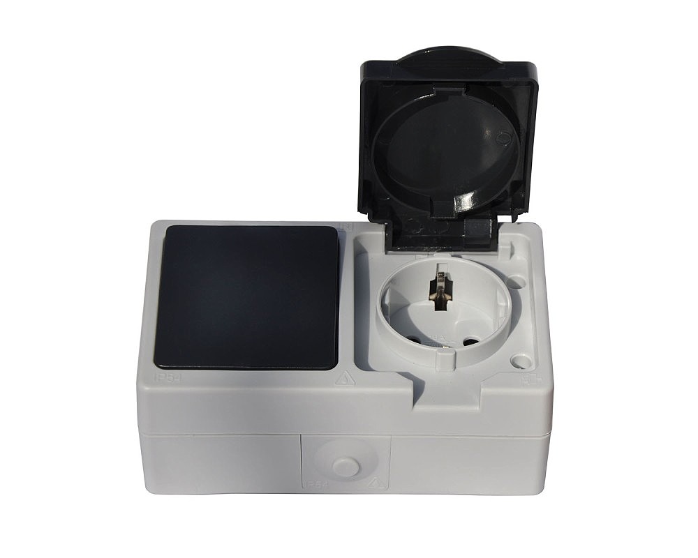 Блок вимикач 1-й + розетка вологозахищені, IP 54 (5/50), Elbrus GISelt