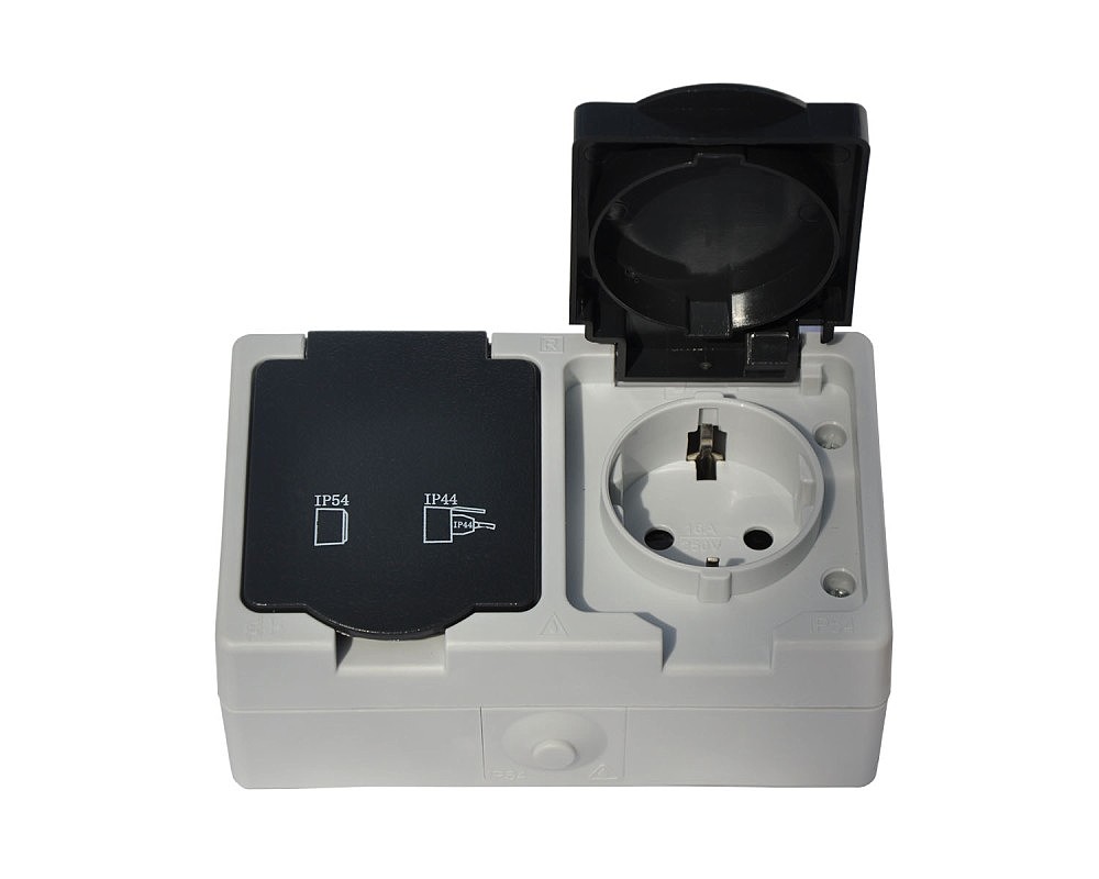 Блок розетка+розетка вологозахищені, IP 54 (5/50), Elbrus GISelt