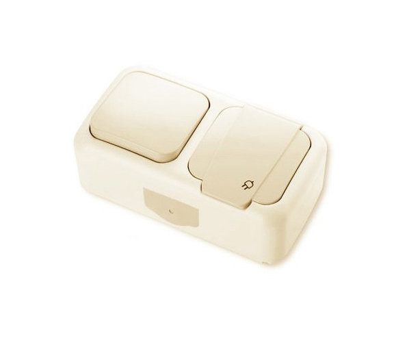 Блок вимикач 1-й + розетка вологозахищені, IP 54 (5/50), Elbrus GISelt