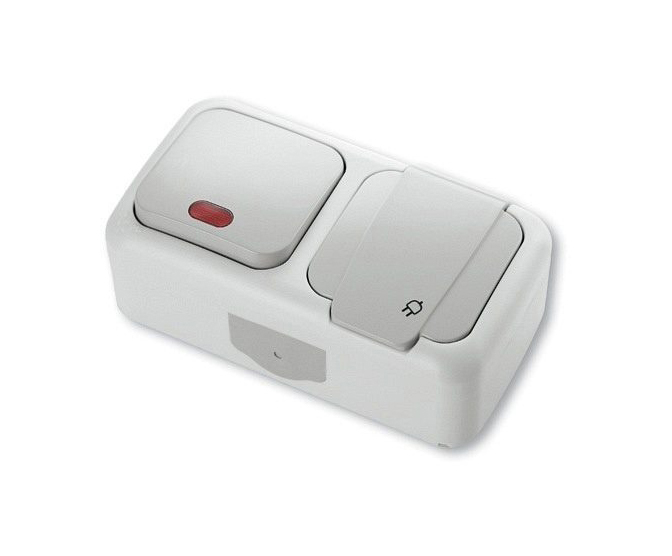Блок вимикач 1-й + розетка вологозахищені, IP 54 (5/50), Elbrus GISelt