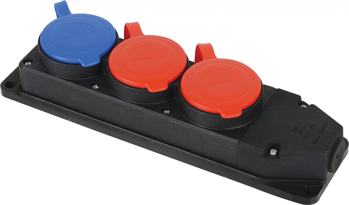 Колодка 3 ГН каучукова FAR з двома трифазними 3*25 та однією однофазною розеткою 1*16 (6/36шт)