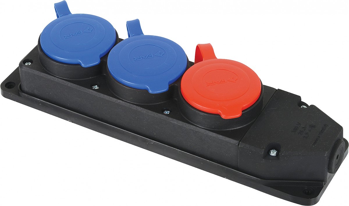 Колодка 3 ГН каучукова FAR з однією трифазною 3*25 та двома однофазними розетками 1*16 (6/36 шт)